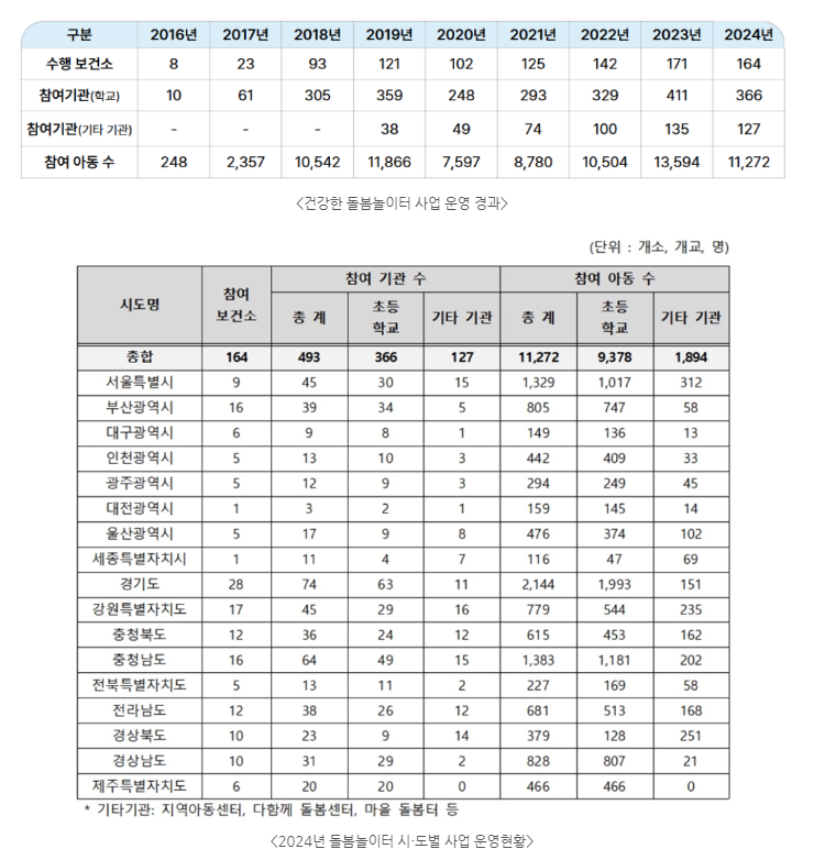 건강한 돌봄놀이터~! 모르고 계셨다면 우리 아이 건강을 위해 지금 바로 찾아보시는걸 추천드리는데요! 2024년 사업 운영 결과는 아래 보건복지부 공식 홈페이지에서 만나보실 수 있답니다~!