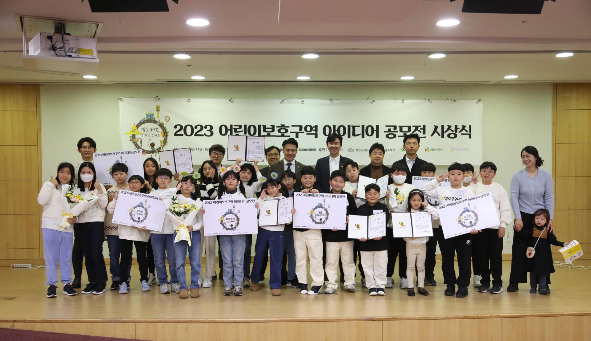 아동안전위원회(위원장 이제복)와 교육부, 국회 행정안전위원회, 서울특별시, 도로교통공단, DB손해보험은 지난 18일 국회의원회관 제2소회의실에서 ‘2023 어린이보호구역 아이디어 공모전’ 본선발표와 시상식을 개최했다.